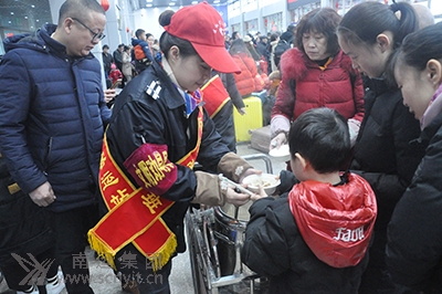 2019年2月10日,是農(nóng)歷已亥年的正月初六。由于春節(jié)假期即將結(jié)束,大量鄉(xiāng)親踏上了返崗的旅途。南充汽車客運站候車大廳內(nèi)人頭攢動,熙熙攘攘。上午9:00時左右,正是客流高峰,只見兩名身穿客運站工作制服、肩披“南充汽車客運站匡紅艷愛心班”綬帶,頭戴小紅帽的年輕站務(wù)員,推著手推車。她們就是車站“匡紅艷愛心班”第二屆班長胡燕和成員李莉,一邊慢慢行走,一邊說道:“各位旅客大家好,今天是大年初六,你們就要離開家鄉(xiāng)遠行了。我們南充汽車客運站專門為大家準備了水餃,給大家餞行,有需要的請告訴我們! 一對旅客夫婦主動詢問道:“好多錢一碗?”胡燕說:“不要錢,是我們車站免費給大家提供的!薄澳銈冘囌具這么好哇,那給我們來兩碗嘛,我們從鄉(xiāng)下來,還真的沒吃早飯!焙嗪屠罾?qū)赏胨?/span>熱情地送到了這對旅客夫婦手中。旅客夫婦說:“謝謝你們,沒想到在車站又嘗到了年味! 見此情景,一些旅客陸續(xù)聚攏到推車跟前,“阿姨!我要吃餃子。”一名小朋友走近推車喊道。“要得,阿姨給你舀!焙嗪屠罾蚰贸鲲埡锌曜,舀好一碗又一碗,送到需要的旅客手中。 “大哥,你到哪里去?”胡燕一邊忙著端水餃,一邊問一位前來的旅客。“我到貴陽,明天就要上班了,路程長,今天我想可能要餓肚子,沒想到你們還準備了水餃,你們車站真好,給我留下了今年春節(jié)家鄉(xiāng)的美好印象,謝謝你們!”“不用謝,這是我們應(yīng)該做的。我們車站每年初六都要為大家煮水餃,給大家提供方便,祝你旅途愉快!焙嗷卮鸬。“你們想得周到,謝謝你們!”旅客吃著熱騰騰的水餃連聲說道。 整整一個上午,胡燕和李莉送了一車又一車,直至將40斤水餃全部送完。她們看見旅客舒心地坐在候車大廳里,滋滋有味地吃著水餃,十分愉快開心。 春節(jié)期間,南充汽車客運站深入開展“情滿旅途”活動,全力做好農(nóng)民工返鄉(xiāng)返崗關(guān)愛服務(wù)工作,熱心為旅客送開水、做好事、猜謎語、搞游園等。其中,大年初一送湯圓和大年初六送水餃,是一直堅持開展的兩項愛心志愿服務(wù)活動,自2010年春運開始,連續(xù)九年堅持不懈,受到了廣大旅客及社會各界的廣泛好評。一些旅客紛紛拍照留影,在網(wǎng)絡(luò)媒體上自發(fā)傳播,產(chǎn)生了良好的社會影響。 (李曉光)