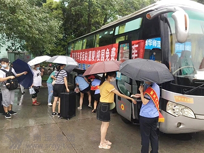 7月10日、11日兩天,車站組織四輛客車和八名站務人員前往西華師范大學接送同學們和老師。并在車身上懸掛醒目的“南充汽車客運站校園免費直通車”大幅標語。八點鐘開始同學們拖著行包,在服務人員的引導下,測體溫,戴口罩、掃碼后登上直通車。直接送到南充汽車客運站內(nèi)轉乘相應線路的車輛,實現(xiàn)了學生從校門到站門的“無縫對接零距離換乘”。今年暑假期間,車站共運送師生達3000多人次,受到學校及廣大師生員工的好評,促進了旅客流量的回升。