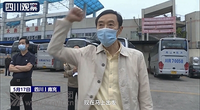 出征中,南運集團大巴車頭張貼了“南充人民心系廣安 攜手奮戰(zhàn)抗擊疫情”的醒目橫幅。駕駛員身穿防護服手拉“南運集團共產(chǎn)黨員先鋒隊”的大紅旗幟舉行抗疫宣誓。返回時,南運集團汽車駕駛培訓(xùn)基地員工們手拉著“熱烈歡迎赴鄰英雄凱旋歸來!”和“向逆行最美駕駛員致敬!”的紅底白字的巨大橫幅,起到很好的宣傳效果。我司黨員先鋒隊奔赴鄰水抗疫一線執(zhí)行運輸保障任務(wù)的英勇壯舉,先后被《人民網(wǎng)》、《四川觀察》、《南充見APP》、《南充日報》、《南充電視臺》、《四川電視臺》、《騰訊網(wǎng)》、《搜狐網(wǎng)》、《新浪網(wǎng)》、《網(wǎng)易新聞》、《封面新聞》、《愛奇藝視頻》、《優(yōu)酷視頻》、《嗶哩嗶哩》、《今日頭條》、《通報今日新聞》、抖音等新聞媒體廣泛宣傳報道。特別是5月18日《四川觀察》以“21臺南運集團的大巴出發(fā)馳援廣安鄰水主要執(zhí)行轉(zhuǎn)運隔離人員的任務(wù)”為題進行了視頻報道,在全省引起反響。5月21日《人民網(wǎng)》在“為疫情防控注入交通力量……”一文中,報道了5月20日第二批手拉“南運集團共產(chǎn)黨員先鋒隊”大紅旗幟的駕駛員抵達廣安鄰水縣抗擊疫情的圖片,在全國反響很好。5月24日《今日頭條》以“南充馳援鄰水 你們辛苦了、鄰水人民感謝你們”為題,播放了歡送“南運集團”大巴有序離鄰返南的清晰流暢的視頻。