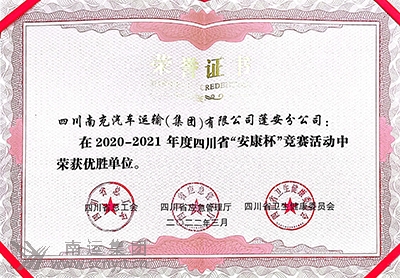 南運(yùn)集團(tuán)蓬安分公司榮獲 “四川省‘安康杯’競賽優(yōu)勝單位”稱號