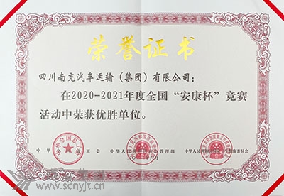 南運(yùn)集團(tuán)榮獲“2020-2021年度全國(guó) ‘安康杯’競(jìng)賽優(yōu)勝單位“稱(chēng)號(hào)