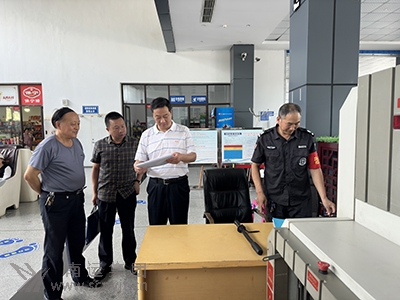 四川省公安廳交警總隊(duì)原副總隊(duì)長(zhǎng)、二級(jí)警務(wù)專(zhuān)員王建民(右二)率領(lǐng)省公安廳安全檢查組一行,深入閬中分公司及所屬閬中汽車(chē)站檢查成都大運(yùn)會(huì)期間的安全保障工作。