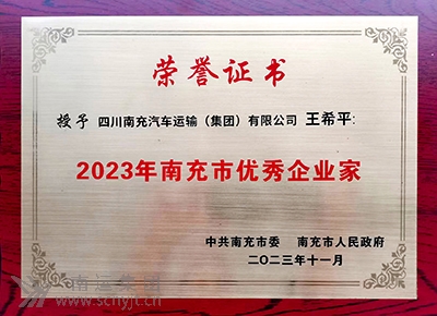 南運(yùn)集團(tuán)黨委書記、董事長(zhǎng)、總經(jīng)理王希平 榮獲“2023年南充市優(yōu)秀企業(yè)家”稱號(hào)
