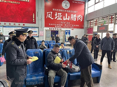 南充市交通運(yùn)輸局一級(jí)調(diào)研員張世民向旅客贈(zèng)送春運(yùn)禮包
