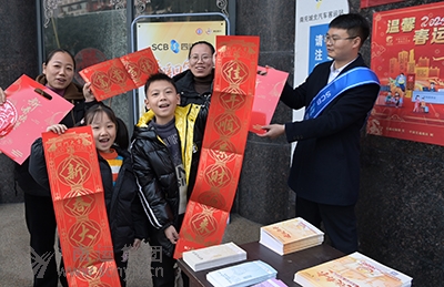 年味漸進(jìn),為營(yíng)造春節(jié)氛圍,1月20日上午,南充市城北汽車客運(yùn)站為務(wù)工人員返鄉(xiāng)回家過(guò)年的旅客送“福袋”。 據(jù)悉,“福袋”里有窗花、對(duì)聯(lián)、紅包,旅客在購(gòu)票排隊(duì)領(lǐng)取車站派送的新春禮物“福袋”!皼](méi)想到剛抵達(dá)城北汽車站,就收到驚喜!币晃粡膹V州返鄉(xiāng)的南充籍務(wù)工人員如是說(shuō)。 目前正值外出務(wù)工人員返鄉(xiāng)的高峰期,該站特準(zhǔn)備“福袋”作為禮物送給旅客,讓他們帶“!被丶疫^(guò)年。當(dāng)天,該站免費(fèi)送出“福袋”200多份,受到旅客點(diǎn)贊。 (城北汽車客運(yùn)站 羅雪)