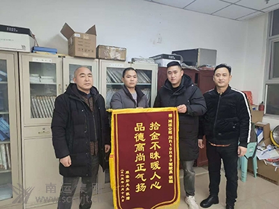 1月26日晚22時,鴻運出租公司營山分公司川R19R93駕駛員張超在營運途中,于后排座拾得一手提包,內(nèi)有現(xiàn)金壹萬元和其他貴重物品。張超隨即聯(lián)系公司,經(jīng)其本人回憶和公司結(jié)合視頻監(jiān)控查找,確定屬銀杏大酒店上車至營盛廣場下車的一名乘客。 經(jīng)公司多方努力,成功聯(lián)系到失主并將手提包歸還。失主彭先生非常感激,對張超熱情服務(wù)和高尚品德給予高度評價,并于2月19日給張超贈送了一面寫有“拾金不昧暖人心 品德高尚正氣揚”的大紅錦旗,以表謝意。 為弘揚正能量,鼓勵廣大駕駛員學(xué)習(xí)張超同志這種拾金不昧的精神,營山鴻運分公司特在駕駛員大會上對張超給予了通報表揚。 (營山分公司 唐方仲)