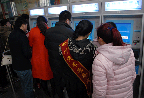 雖然車站在市轄三區(qū)和郵政網(wǎng)點(diǎn)設(shè)置了50個(gè)站外售票點(diǎn),但售票廳9個(gè)售票窗口一直排著購(gòu)票的旅客隊(duì)伍。車站臨時(shí)增加了1個(gè)出售成都和1個(gè)出售廣東、深圳、汕頭的售票車處。車站自助取票機(jī)由原來(lái)的4臺(tái)增設(shè)為6臺(tái),旁邊張貼著印有二維碼、支付寶等條目標(biāo)的“南充客運(yùn)站官方網(wǎng)站”,在四川汽車票務(wù)網(wǎng)兩名工作人員和1名“小紅帽”站務(wù)人員的引導(dǎo)下,讓旅客通過(guò)手機(jī)掃二維碼購(gòu)買車票。一名去宜賓的年輕旅客,拿出手機(jī),輕輕掃了一掃二維碼,便成功地取到了由南充去宜賓的汽車票,他高興地說(shuō):“互聯(lián)網(wǎng)+掃二維碼,快捷地就買了車票,不用排隊(duì)了,真方便。”售票大廳里排隊(duì)購(gòu)票的秩序井然,但沒(méi)有看見(jiàn)售票廳象往年那樣排隊(duì)購(gòu)票的隊(duì)伍排到售票廳外面的現(xiàn)象了。