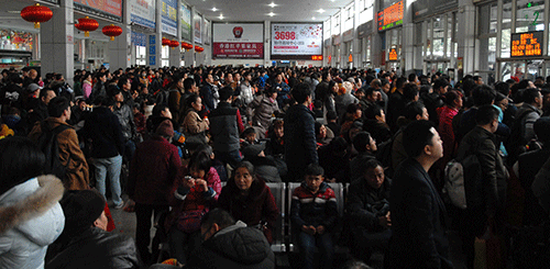 中午1點(diǎn)多鐘,由于成南高速公路私家小車流量增大,嚴(yán)重堵車,造成加班車輛不能及時(shí)返回車站,致使到成都的旅客排著兩列隊(duì)伍從候車廳8號(hào)檢票口一直延伸到5號(hào)檢票口對(duì)面的候車廳內(nèi)。但一直沒(méi)有看見(jiàn)到成都排隊(duì)上車的隊(duì)伍延伸到候車廳外,象往年那樣在站前廣場(chǎng)蜿蜒曲折“山路十八彎”的情景了。懸掛著12個(gè)大紅燈籠的整個(gè)候車大廳里旅客十分擁擠,人滿為患,卻暖意融融。車站派出所所長(zhǎng)楊宗明帶領(lǐng)6名公安干警和嘉陵區(qū)公安分局的8名特警來(lái)回巡邏執(zhí)勤,反恐防暴,高度警惕地維護(hù)著檢票上車和旅客候車秩序。
