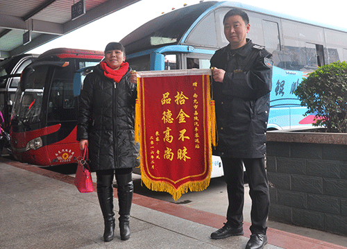 一句“謝謝”不足以表達南充市民青鳳對南充汽車客運站工作人員的感謝,一句“這是我們應該做的”詮釋了南充汽車客運站工作人員踐行“質量第一、旅客至上”的服務宗旨。2016年2月21日上午,在南充汽車客運站發(fā)班站臺上,青女士將寫有“拾金不昧、品德高尚”的錦旗送到車站服務質量管理科科長王洪手中,感謝車站培養(yǎng)出來的優(yōu)秀員工,感謝駕駛員不被金錢所誘惑拾金不昧的高尚品格,再次為社會傳遞了正能量。