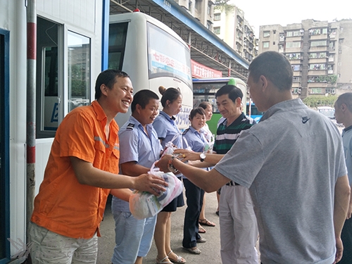 7月19日下午,烈日炎炎,高坪分公司黨總支書記、工會主席林仕先帶領(lǐng)相關(guān)部門負(fù)責(zé)人,攜帶冰糖、藿香正氣液、風(fēng)油精、毛巾等防暑降溫物品,為高坪車站堅(jiān)守在烈日酷暑下的一線站務(wù)人員送清涼。林書記說,他代表集團(tuán)公司慰問一線員工,希望員工們發(fā)揚(yáng)戰(zhàn)高溫、斗酷暑的奉獻(xiàn)精神,抓好暑運(yùn)、汛期的安全生產(chǎn)工作,同時要注意高溫防暑,保重自己的身體。