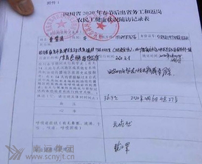 每位乘客的《四川省2020年春節(jié)后出省務工和返崗農(nóng)民工健康狀況隨訪記錄表
