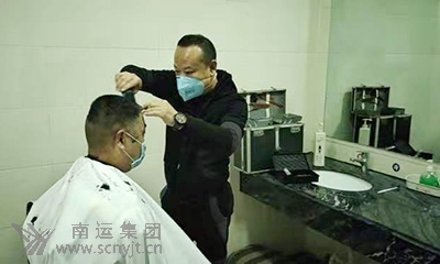 在抗擊疫情中,南運集團高速客運分公司小轎車駕駛員吳長路在市直機關(guān)辦公樓為男士們義務(wù)理發(fā)。