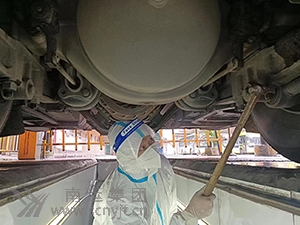 南運(yùn)集團(tuán)各單位消毒人員,每次車(chē)輛在執(zhí)行疫情防控應(yīng)急運(yùn)輸任務(wù)的發(fā)車(chē)前收車(chē)后,都按照疫情防控要求,車(chē)輛需要白天和黑夜不間斷消毒,在做好自身防護(hù)的前提下,消毒員隨時(shí)背著幾十公斤的消毒液,里里外外嚴(yán)格進(jìn)行整車(chē)消毒消殺、清潔通風(fēng),像客車(chē)行李箱由于空間低矮窄小,他們需要趴在行李箱內(nèi)甚至是跪在地上,才能將噴頭深入最里面的角度,噴灑車(chē)棚時(shí),又要沿著梯子爬上去,才能?chē)姙⒌阶铐敹,他們?jīng)常被消毒液熏得嗓子疼痛干澀,眼睛發(fā)酸發(fā)脹,他們依然在平凡的崗位上堅(jiān)守這自己的職責(zé),無(wú)怨無(wú)悔。